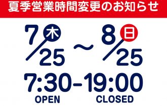 - 夏季営業時間変更のお知らせ