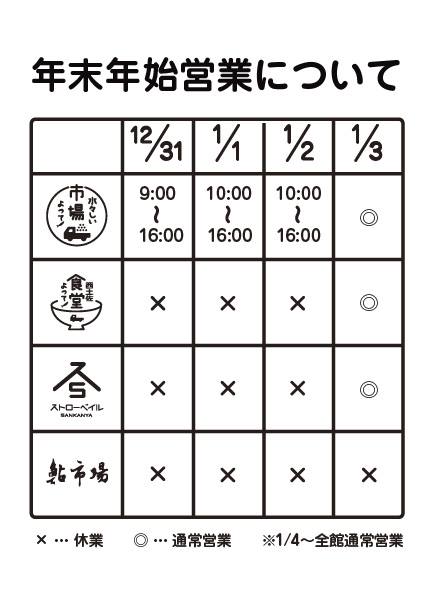12/31(木) 9:00~16:00(直売所のみ営業)