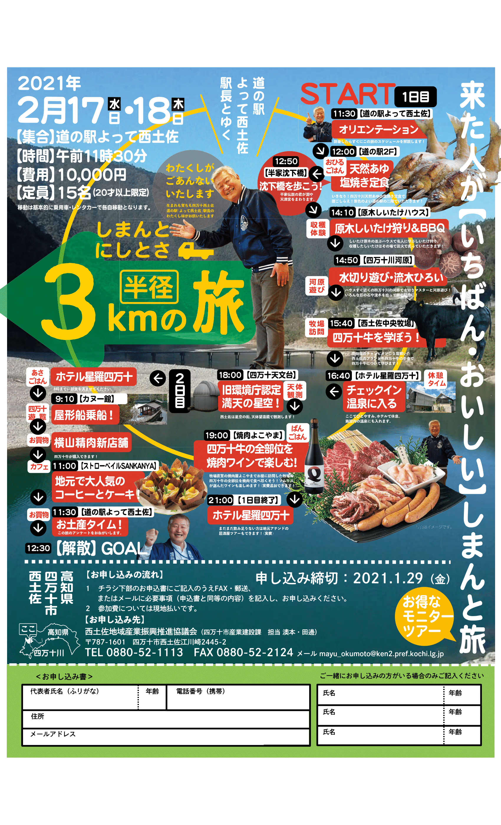 その名も!『来た人が【いちばん・おいしい】西土佐しまんと旅モニターツアー』!