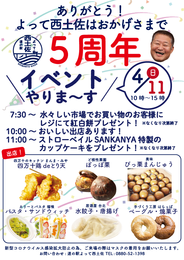 皆さまに支えられ、道の駅よって西土佐はおかげさまで5周年を迎えます!!
