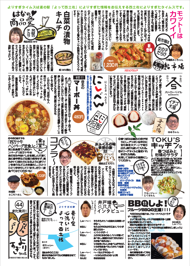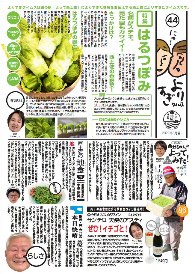 日々のこと 2022.03.01 にゅ~よりすぎタイムス3月号ができました! 道の駅よって西土佐の情報をお伝えする情報誌「にゅ~よりすぎタイムス」の3月号ができました!今月もさまざまな情報をお伝えしています!ぜひチェックしてみてくださいね~♪ ▼ダウンロードはこちらから 一覧に戻る 最近の記事 2026.04.18 【4/25(土)~11/30(月)『帰ってきた!カレー街道!奥伊予・四万十街道グルメデジタルスタンプラリー』開催!】 2026.04.02 よりすぎタイムス4月号ができました! 2026.03.31 2026/4/5(日)【道の駅よって西土佐】『10周年だよ!よっておきゃく!』臨時駐車場のご案内 2026.03.17 2026/4/5(日)【10周年だよ!よっておきゃく!】開催!