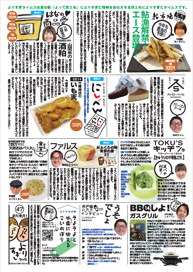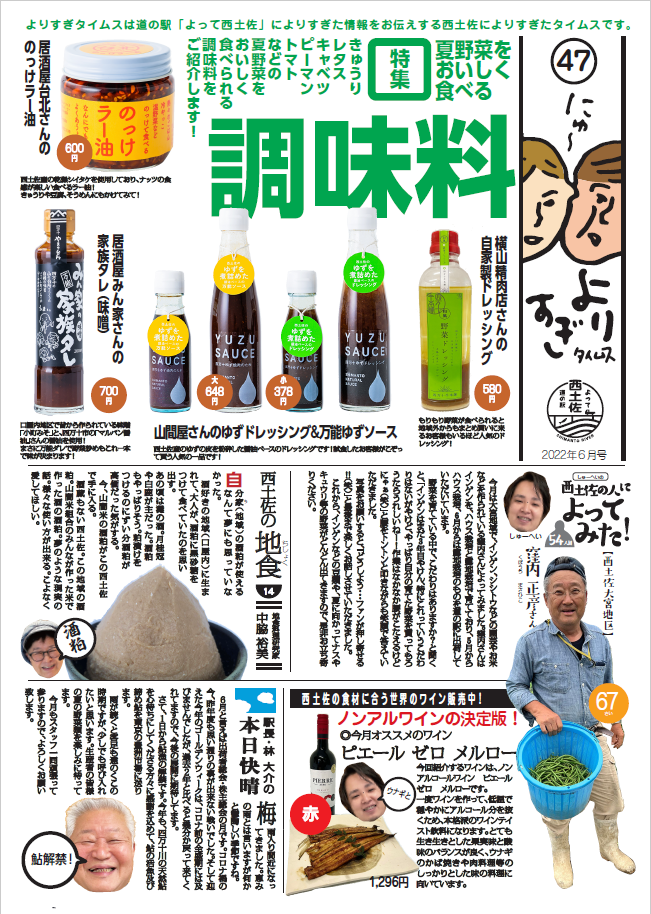 日々のこと 2022.06.01 にゅ~よりすぎタイムス6月号ができました! 道の駅よって西土佐の情報をお伝えする情報誌「にゅ~よりすぎタイムス」の6月号ができました!今月もさまざまな情報をお伝えしています!ぜひチェックしてみてくださいね~♪ 高画質版はこちら 一覧に戻る 最近の記事 2026.04.18 【4/25(土)~11/30(月)『帰ってきた!カレー街道!奥伊予・四万十街道グルメデジタルスタンプラリー』開催!】 2026.04.02 よりすぎタイムス4月号ができました! 2026.03.31 2026/4/5(日)【道の駅よって西土佐】『10周年だよ!よっておきゃく!』臨時駐車場のご案内 2026.03.17 2026/4/5(日)【10周年だよ!よっておきゃく!】開催!