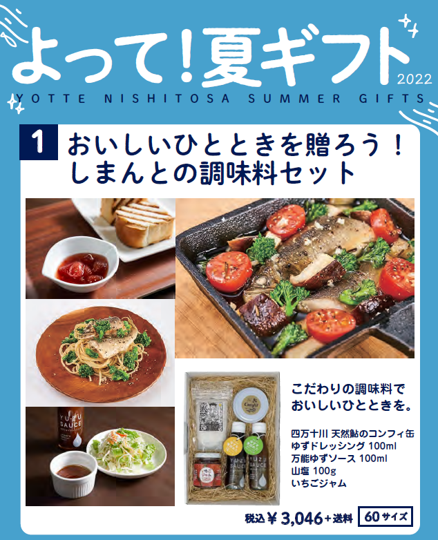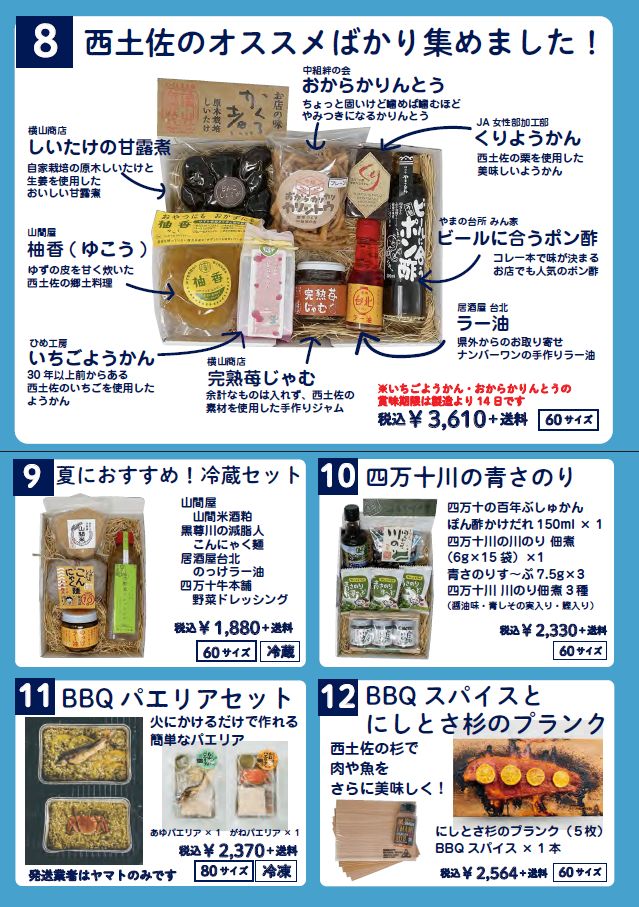 日々のこと 2022.07.10 夏のギフトカタログができました! 夏のギフトカタログができました!道の駅よって西土佐のレジで受付しております!オンラインショップでもご注文していただけますので、ぜひごらんください♪ オンラインショップはこちら 一覧に戻る 最近の記事 2026.04.18 【4/25(土)~11/30(月)『帰ってきた!カレー街道!奥伊予・四万十街道グルメデジタルスタンプラリー』開催!】 2026.04.02 よりすぎタイムス4月号ができました! 2026.03.31 2026/4/5(日)【道の駅よって西土佐】『10周年だよ!よっておきゃく!』臨時駐車場のご案内 2026.03.17 2026/4/5(日)【10周年だよ!よっておきゃく!】開催!
