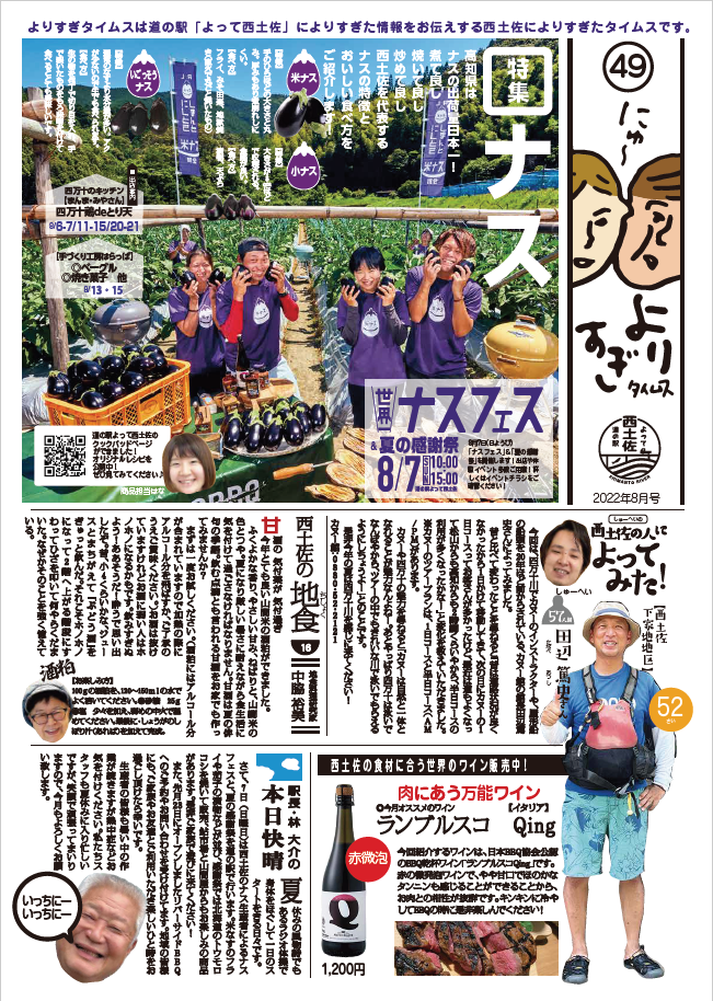 道の駅よって西土佐の情報をお伝えする情報誌「にゅ~よりすぎタイムス」の8月号ができました!今月から新連載も登場していますよ~!今月もさまざまな情報をお伝えしています!ぜひチェックしてみてくださいね~♪