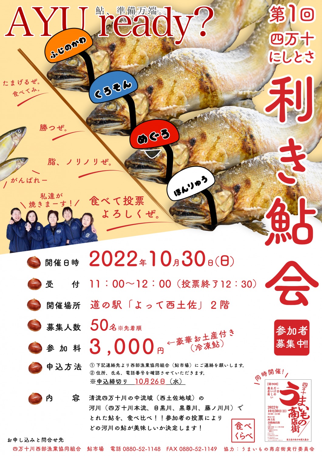 令和4年10月30日(日)に行われました「第1回 四万十にしとさ利き鮎会」の審査結果は以下の通りです。