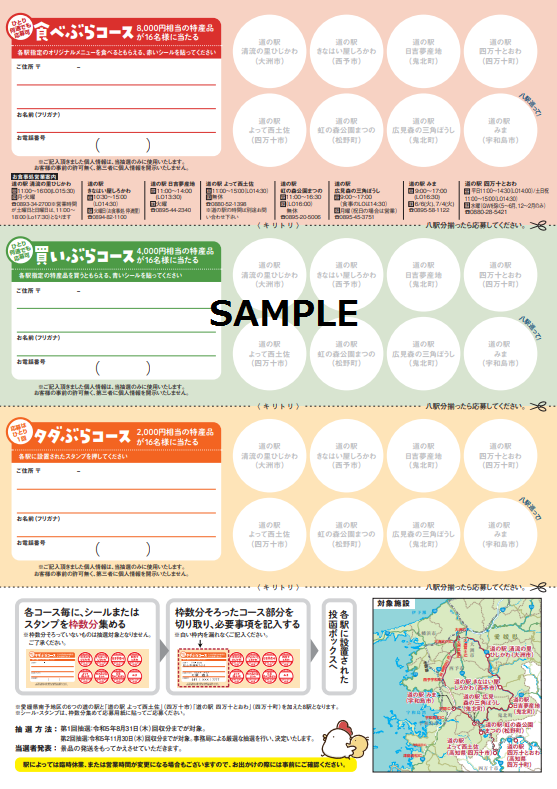 八駅分のシールやスタンプを集めて道の駅に設置してある応募箱に投函してください!