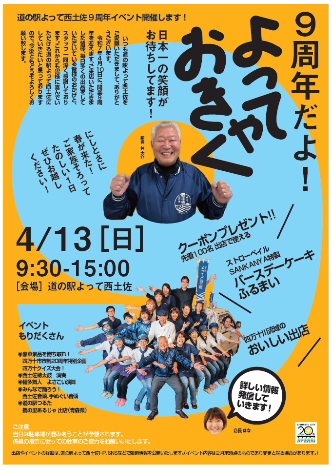 おかげさまで、道の駅よって西土佐は9周年を迎えます!