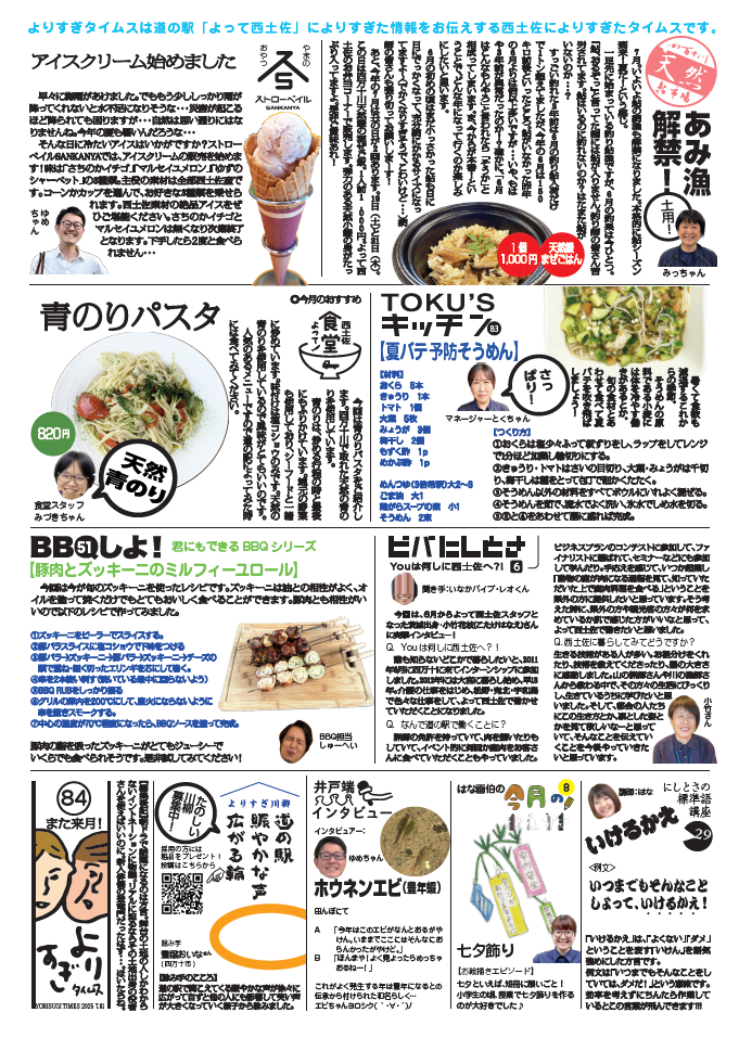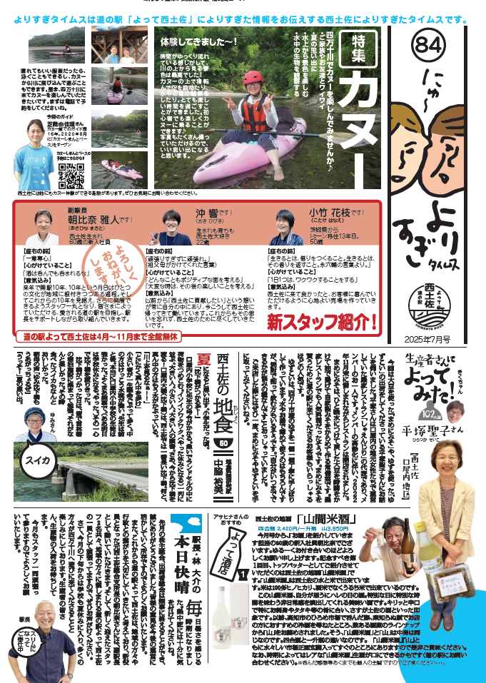 日々のこと 2025.07.01 よりすぎタイムス7月号ができました! 道の駅よって西土佐の情報誌よりすぎタイムス7月号ができました! ぜひご一読ください! ▼PDFはこちらから ▼バックナンバーはこちら 一覧に戻る 最近の記事 2026.04.18 【4/25(土)~11/30(月)『帰ってきた!カレー街道!奥伊予・四万十街道グルメデジタルスタンプラリー』開催!】 2026.04.02 よりすぎタイムス4月号ができました! 2026.03.31 2026/4/5(日)【道の駅よって西土佐】『10周年だよ!よっておきゃく!』臨時駐車場のご案内 2026.03.17 2026/4/5(日)【10周年だよ!よっておきゃく!】開催!