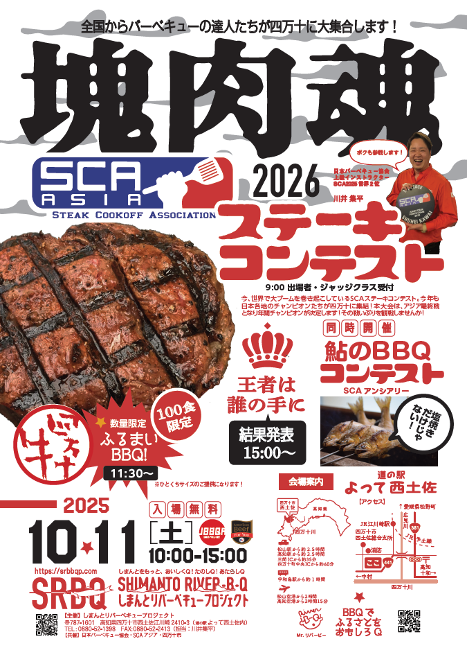 令和7年10月11日にSCAA(Steak cookoff Association ASIA)が道の駅よって西土佐で行われます。