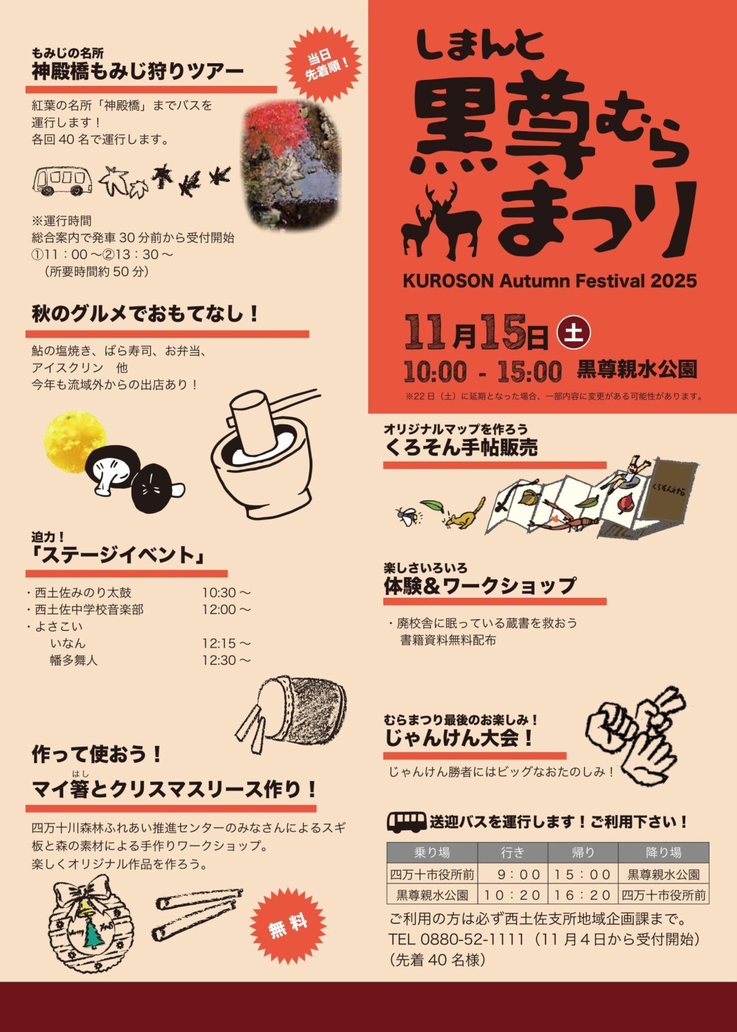 2025/11/15(土)【しまんと黒尊むらまつり】のお知らせ(会場:四万十市西土佐奥屋内 親水公園)
