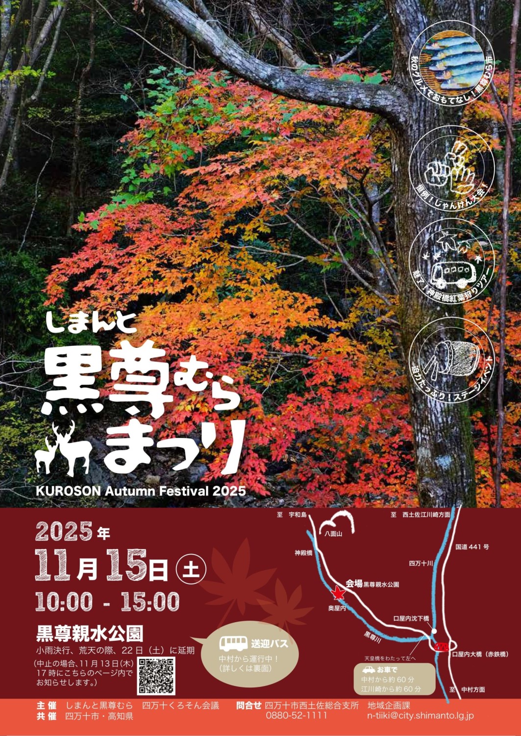 2025/11/15(土)は、黒尊親水公園にて、「しまんと黒尊むらまつり」が開催されます!
