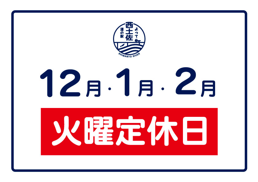道の駅よって西土佐は、12月・1月・2月の間、火曜が定休日です。