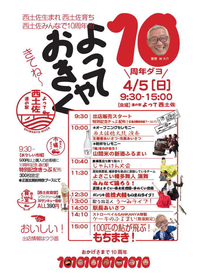 2026/4/5(日)【道の駅よって西土佐】『10周年だよ!よっておきゃく!』臨時駐車場のご案内