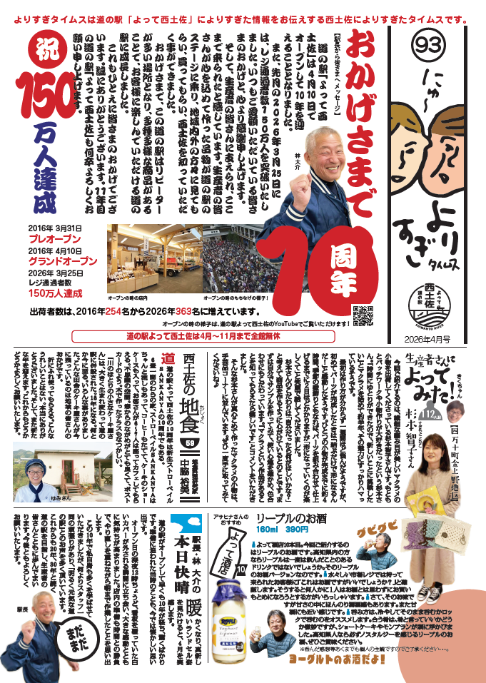 2026年4月で道の駅よって西土佐が開業しておかげさまで丸10年!!