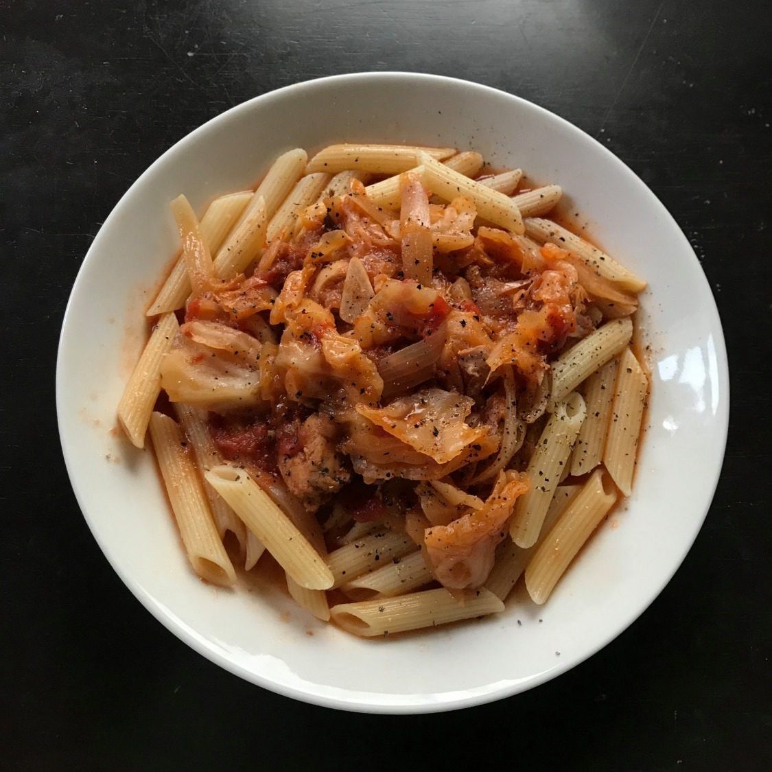 今回は、ペンネがあったので合わせてみました。黒コショウをかけていただきます♪