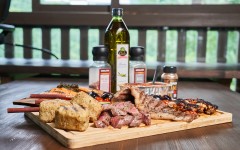 日本バーベキュー協会が徹底研究したアメリカのBBQソースをベースに昆布や醤油を加えたUMAMIソースとラブ。ラブとは焼く前の食材にしっかりまとわりつけて、調味と水分を逃さない役割を果たす世界のBBQでは定番のシーズニングです。